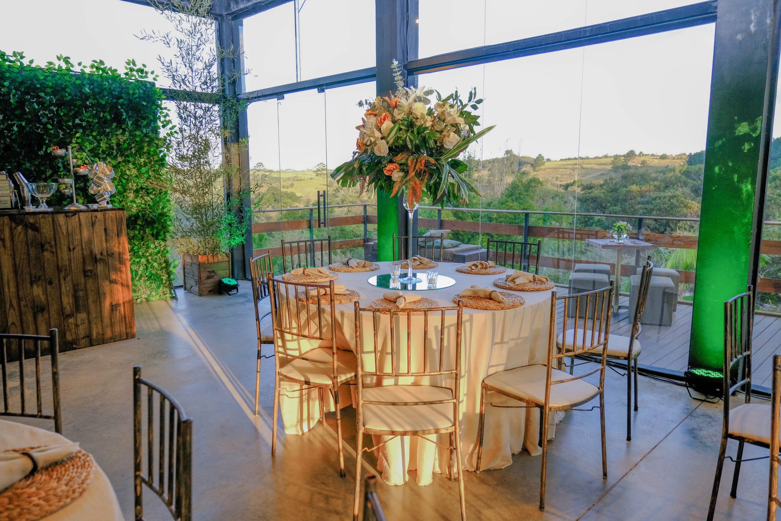 O Mirante do Rancho Trilha do Sol é o cenário perfeito para eventos marcantes. Com estrutura contemporânea em vidro, iluminação cênica e paisagismo exuberante, esse espaço une o charme da natureza ao conforto de um salão moderno. Sua arquitetura permite celebrações com clima intimista ou festas grandiosas, sempre valorizando a vista panorâmica e o contato com o verde.